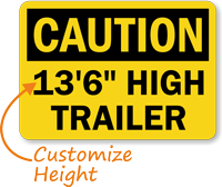 Measure the lowest point and subtract a 3–6 inch safety margin. For custom measurements, use our clearance signs tool to print your specific height.