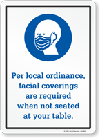 Masks should be worn in all public spaces, both indoors and outdoors, and particularly in situations where following the other social distancing practices may not be possible. Whenever interacting with people not from your household, wearing a mask is recommended. Customers can be easily prompted to wear masks through well-placed sign reminders. Face mask signs could be placed anywhere inside the facility especially entrances, and also on sidewalks, open waiting areas, outdoor seating, etc.