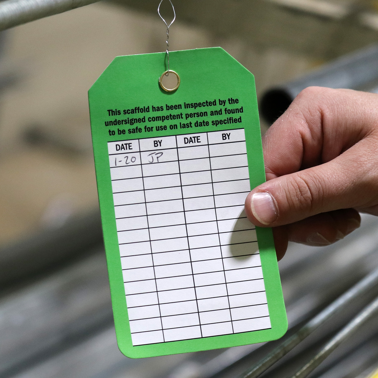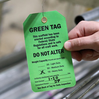 Timely inspection of scaffolds can enhance your fall protection program. Use this 2-Sided Scaffold Status tag to maintain inspection records.